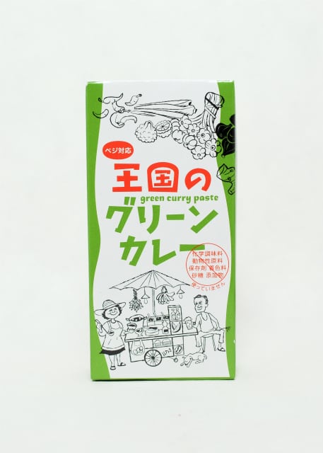 バンコクの400店以上のお店で愛される「王国のグリーンカレー」ココナッツミルクと混ぜて煮るだけ、鍋ひとつ15分で本格タイカレーが出来上がります。その他、炒め物やチャーハンなどに使えばエスニック料理に。青唐辛子の辛さとスパイシーな香り、甘くしたい時は甜菜糖、メープルシロップ、やし糖などを加えてみては。